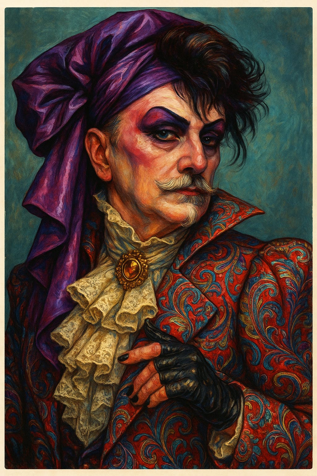 Frilly pirate shirts that looked like they’d been nicked off Adam Ant’s laundry line. Velvet jackets that looked like they’re off Bob’s fabrics on Barnsley market, in colours so lurid they could trigger migraines. Trousers with pleats sharp enough to wound a man. And hair, sculpted, moussed, and backcombed into structural feats of engineering that could survive gale-force winds and possibly nuclear fallout. Half of us looked like extras from Dangerous Liaisons, the other half like we’d been mugged by a branch of C&A.